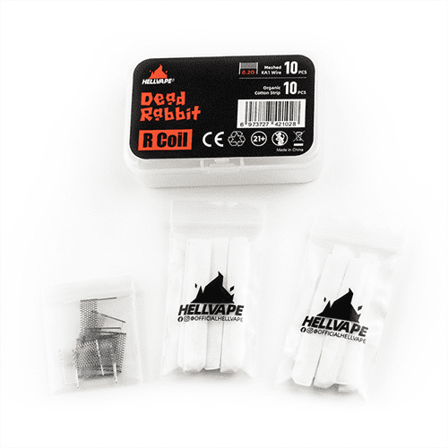 Descubra o Kit de bobinas Hellvape Dead Rabbit R, com bobinas de Fe-Cr de malha de 0,2 ohm e tiras de algodão orgânico para reconstruir as bobinas sub-ohm.