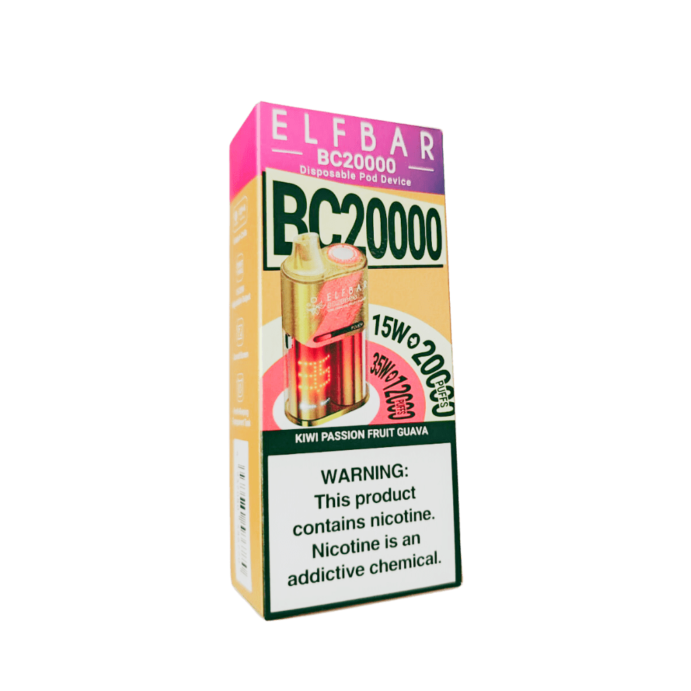 Delicie-se com o sabor vibrante do Pod Descartável Elf Bar BC20000 – 20.000 Puffs – Kiwi Passion Fruit Guava e leve sua experiência de vaping a um novo nível de frescor e tropicalidade.
