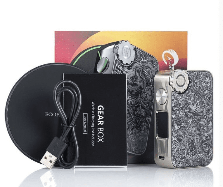 O VapeMons Gear Box 222W é um belo cruzamento entre resina e metal escovado, incorporando um knob de ajuste inspirado no estilo steampunk, o avançado Chipset VM Omni Board 4.0 e com carregamento sem fio Qi para permitir uma maneira rápida e conveniente de carregar a GearBox Box Mod.